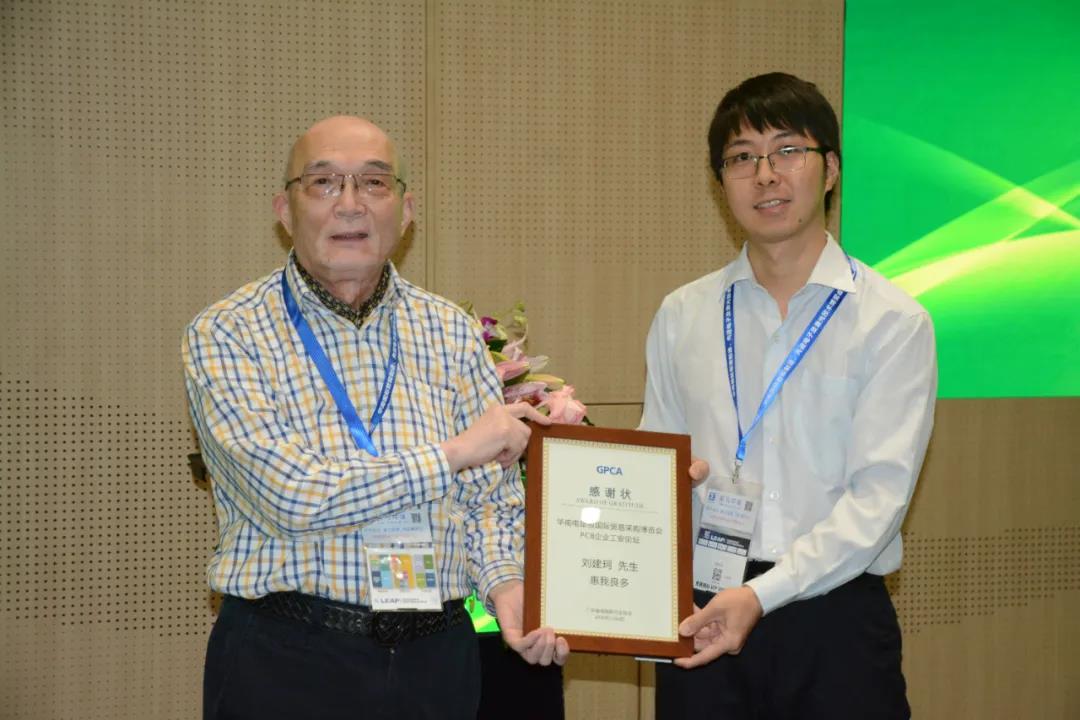 滬士電子獨立董事吳安甫(左)為中拓環(huán)境技術(shù)部經(jīng)理劉建珂頒發(fā)講師感謝狀。