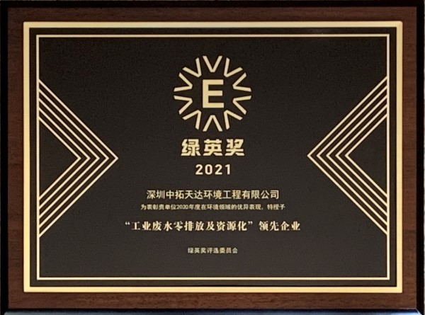 大會舉辦期間,公布了2021年“綠英獎”獲獎名單,深圳中拓環(huán)境工程有限公司很榮幸地被授予“工業(yè)廢水零排放及資源化 領(lǐng)先企業(yè)”獎項(xiàng)。